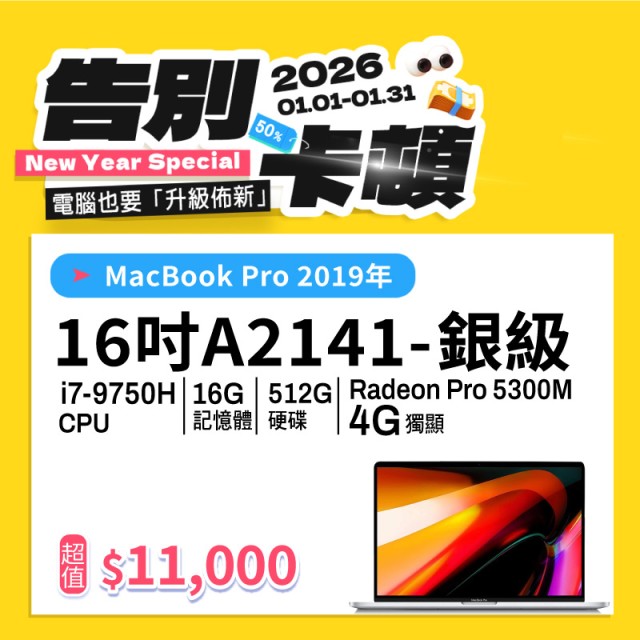 【樺仔1月優惠】MacBook Pro A2141 銀級 ( i7-9750H / 4G獨顯 / 16G記憶體 / 512G SSD )