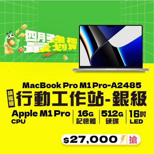 【樺仔4月快閃優惠】MacBook Pro A2485 銀級 ( M1 Pro 晶片 / 16G記憶體 / 512G SSD )