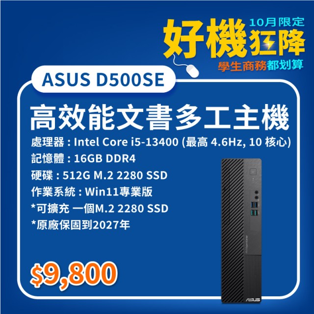 ASUS D500SE i5-13400 十核心高效能主機 16G記憶體 原廠保固到2027年