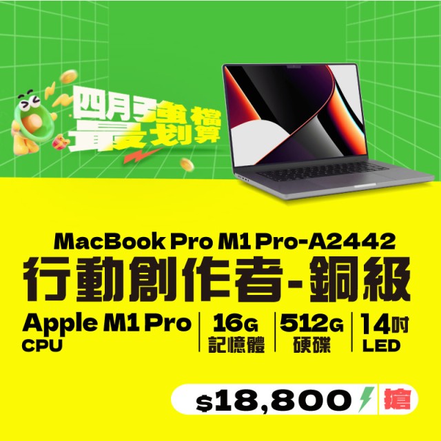 【樺仔4月快閃優惠】MacBook Pro A2442 銅級 ( M1 Pro 晶片 / 16G記憶體 / 512G SSD )