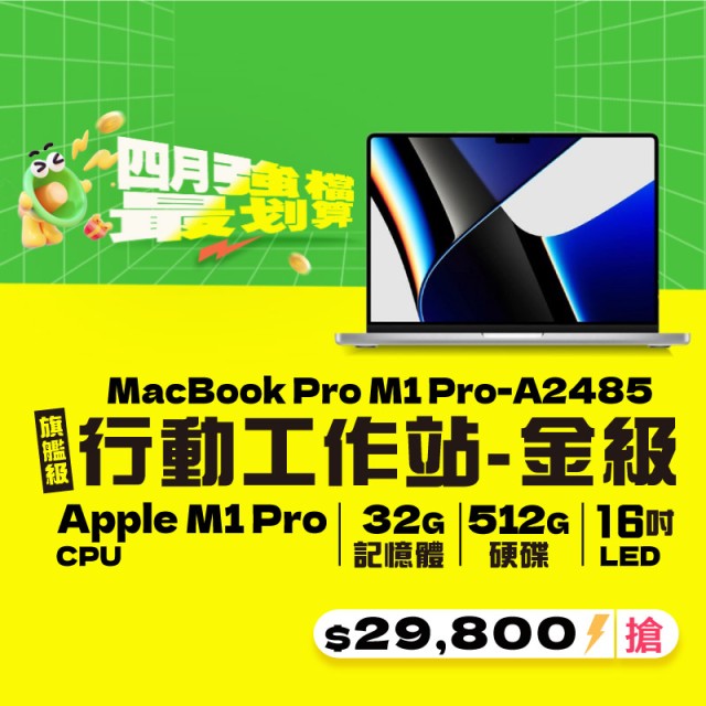 【樺仔4月快閃優惠】MacBook Pro A2485 金級 ( M1 Pro 晶片 / 32G記憶體 / 512G SSD )