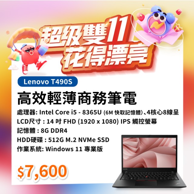 【樺仔11月快閃優惠】Lenovo T490s ( 8G記憶體 / 512G SSD / Win11 )