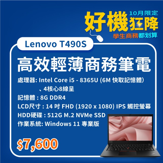 【樺仔10月快閃優惠】Lenovo T490s ( 8G記憶體 / 512G SSD / Win11 )